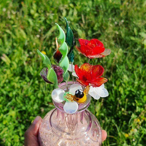 - Matière : fleur en verre de murano, tige en laiton, vase en verre
